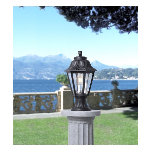 Baštenski stubni fenjer FUMAGALLI MIKROLOT-ANNA u crnoj boji napravljen je od materijala otpornog na udarce, UV zrake, rđu i koroziju, kao i na ostale spoljašnje uslove.