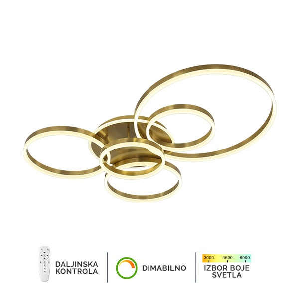 LED plafonska lampa Forma F2047-174C SG koja dolazi u boji ylata, doprinosi modernom izgledu vaših prostorija. Jačina od 174W sa integrisanim LED svetlom omogućiće vam dugotrajno i elegantno osvetljenje.Takođe poseduje daljinski upravljač za odabir boje svetla u rasponu od 3000K do 6400K kao i dimovaje,sto omogućava da podesite jačinu svetla vašim potrebama.Zbog svojih dimenzija od Ø300xØ600xØ400mm ova lampa je idealna za osvetljenje trpezarije, spavaće ili dnevne sobe.