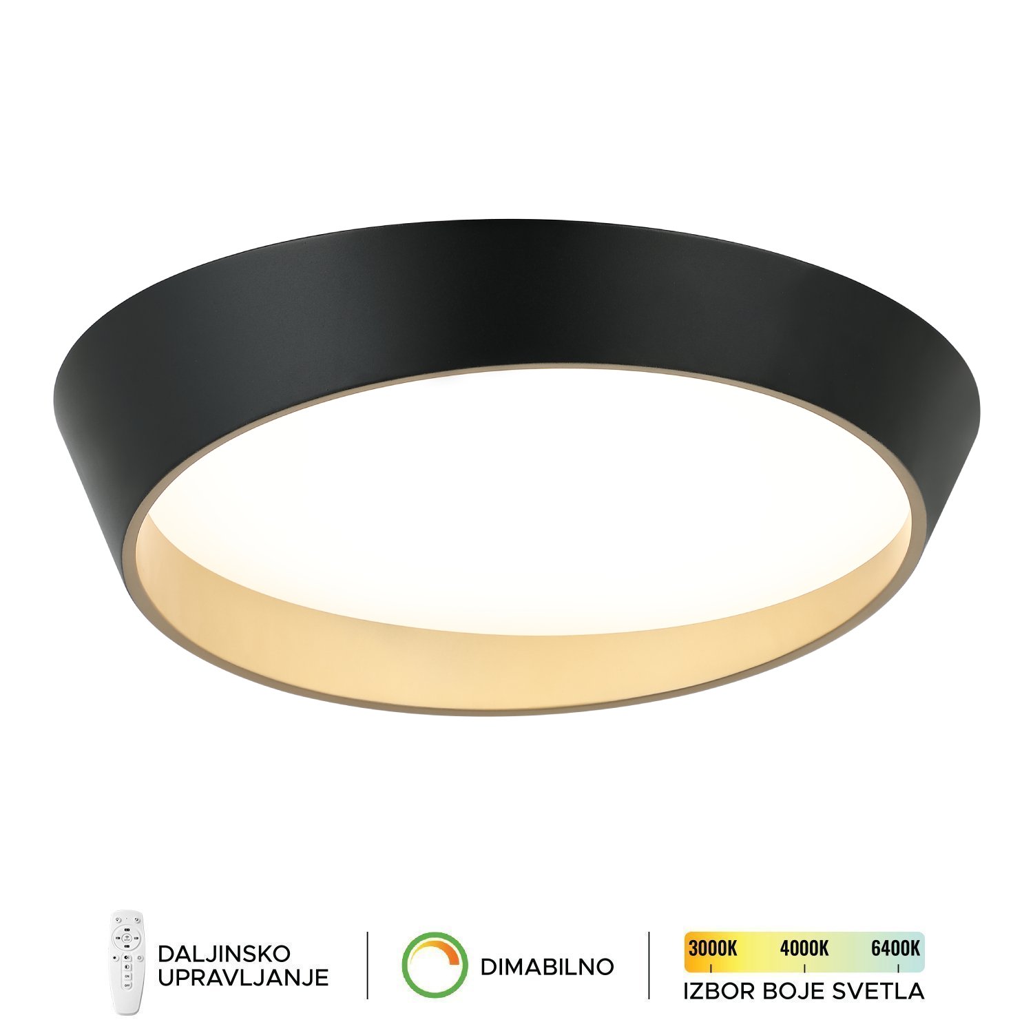 LED plafonska lampa Forma F2098-75C BK+SG predstavlja savršen spoj savremenog dizajna i sofisticirane elegancije, namenjena prostorima u kojima se traži upečatljiv, ali nenametljiv vizuelni akcenat. Kombinacija crne i zlatne završne obrade daje lampi profinjen izgled i unosi dozu diskretnog luksuza u svaki enterijer. Opremljena je integrisanim LED izvorom svetla jačine 75W, koji obezbeđuje ravnomerno, prijatno i energetski efikasno osvetljenje prostora. Pomoću daljinske kontrole moguće je jednostavno prilagoditi temperaturu boje svetla u rasponu od 3000K do 6400K, kao i intenzitet osvetljenja (dimer funkcija), što omogućava stvaranje idealne atmosfere u zavisnosti od potrebe. Sa dimenzijama Ø600x120x70mm, ova plafonska lampa je odličan izbor za dnevne sobe, trpezarije, spavaće i radne prostore, gde se ističe svojim modernim oblikom, čistim linijama i visokim estetskim standardom.