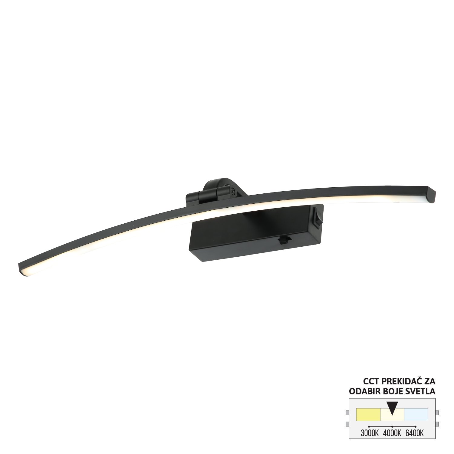 LED zidna lampa Forma LZ008-12 BK predstavlja savršen spoj modernog dizajna i funkcionalnosti. Izrađena od kvalitetnog aluminijuma u elegantnoj crnoj boji, dimenzija 500 x 70 mm, lako se uklapa u svaki savremeni enterijer.Sa snagom od 12W i integrisanim LED osvetljenjem, pruža optimalnu osvetljenost uz energetsku efikasnost. Zahvaljujući ugrađenom CCT prekidaču, možete jednostavno prilagoditi temperaturu svetlosti prema svojim potrebama – birajte između tople (3000K), neutralne (4000K) ili hladne bele svetlosti (6400K) i kreirajte idealnu atmosferu u prostoru.Ova lampa je odličan izbor za kupatila i slike.