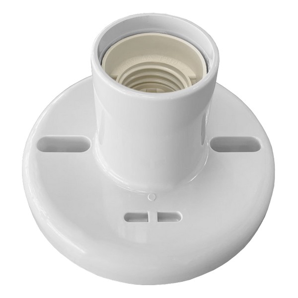 Grlo E27 okruglo belo je izrađeno od plastike i metala, pogodno za montažu na plafon ili zid.
