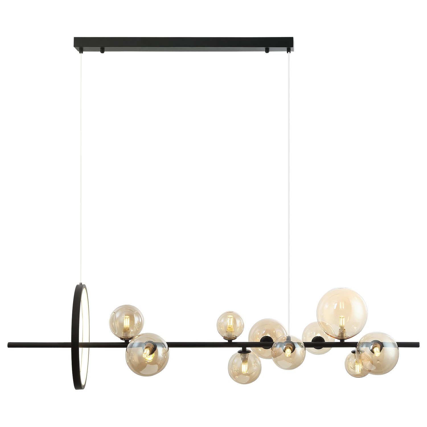 Visilica Forma F9203-10V BK sa deset grla (G9) i 13W jačine sa integrisanim LED svetlom i bojom svetla od 4000K doprinosi modernom izgledu vaših prostorija.Izrađena je od metala u crnoj boji dok su kugle od stakla u amber boji.Dizajn visilice je modernog karaktera, sa elegantnim detaljima koji upotpunjuju njen luksuzni izgled.Zahvaljujući elegantnom vertikalnom obliku, bojama, originalnom i modernom dizajnu, može se uklopiti uz većinu enterijera.Zbog svojih dimenzija od 1200xØ1200mm ova visilica je idealna za trpezarije, dnevne sobe, spavaće sobe.