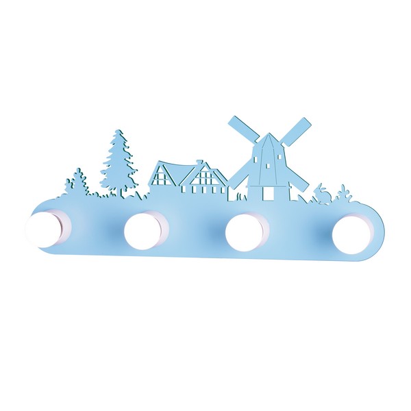Zidna lampa Forma DF7011-4Z BL unosi razigranu i veselu atmosferu u svaku dečiju sobu. Ističe se upečatljivom plavom bojom i poseduje četiri E27 grla. Izrađena je u kombinaciji plastike i medijapana, u dimenzijama 510x135x147mm. Istovremeno funkcionalna i dekorativna, ova lampa lepo osvetljava prostor i podstiče maštu mališana.