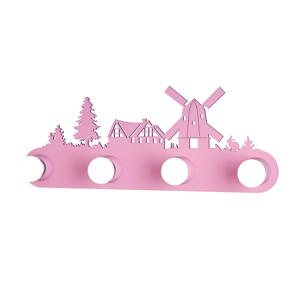 Zidna lampa Forma DF7011-4Z P unosi razigranu i veselu atmosferu u svaku dečiju sobu. Ističe se upečatljivom roze bojom i poseduje četiri E27 grla. Izrađena je u kombinaciji plastike i medijapana, u dimenzijama 510x135x147mm. Istovremeno funkcionalna i dekorativna, ova lampa lepo osvetljava prostor i podstiče maštu mališana.